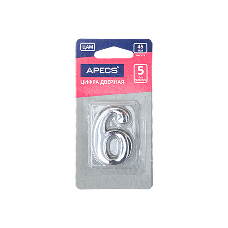 Дверные цифры Apecs из ЦАМа на клейком основании. Ассортимент цветов: CR - хром и G - золото.
